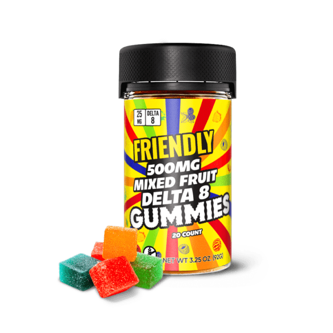 Friendly Delta 8 500MG Mixed Fruit Gummies- 20 Count
